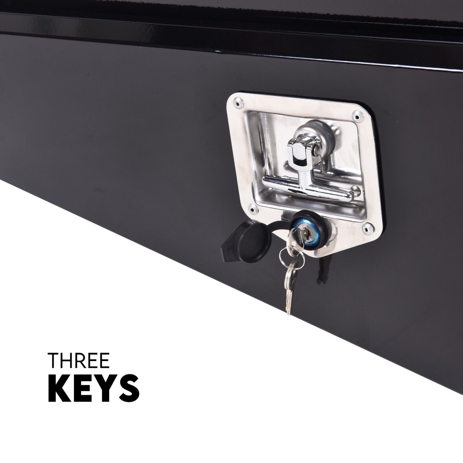 This under tray toolbox set provides a durable and secure storage solution for your truck or UTE. Made from heavy-duty steel with a powder-coated finish, it offers weather and dust resistance, ensuring long-lasting use and easy maintenance. The design includes secure locking features and a comfortable handle, making it suitable for both professional and amateur use.