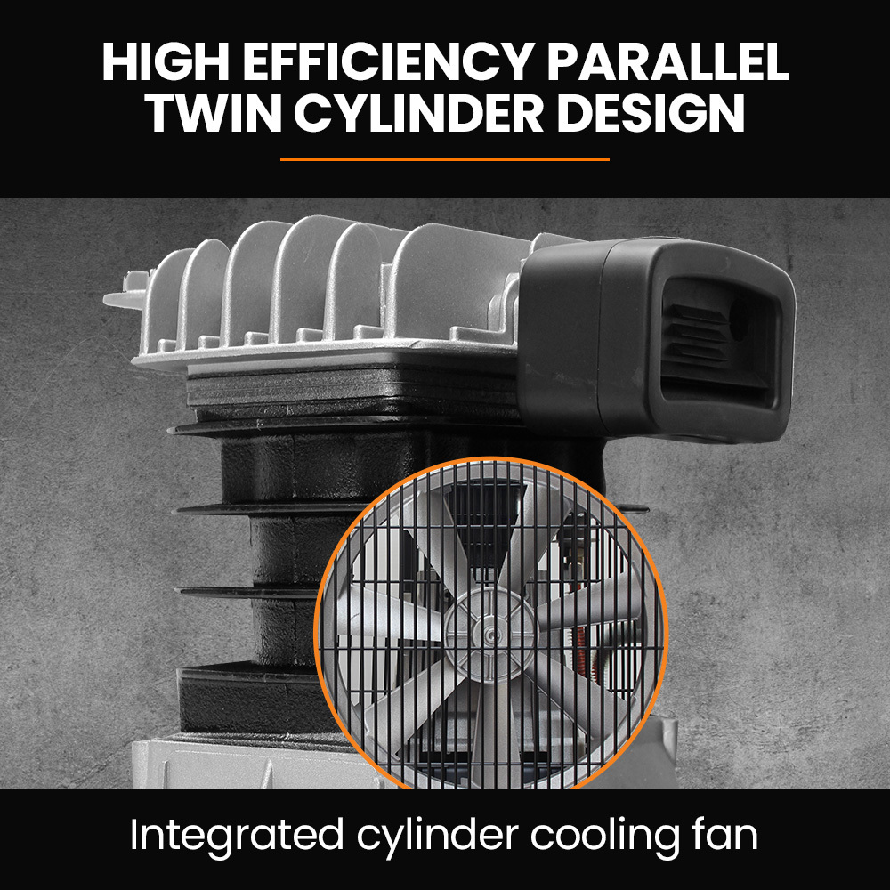 • Cast iron twin-cylinder compressor with aluminium pistons for durability
