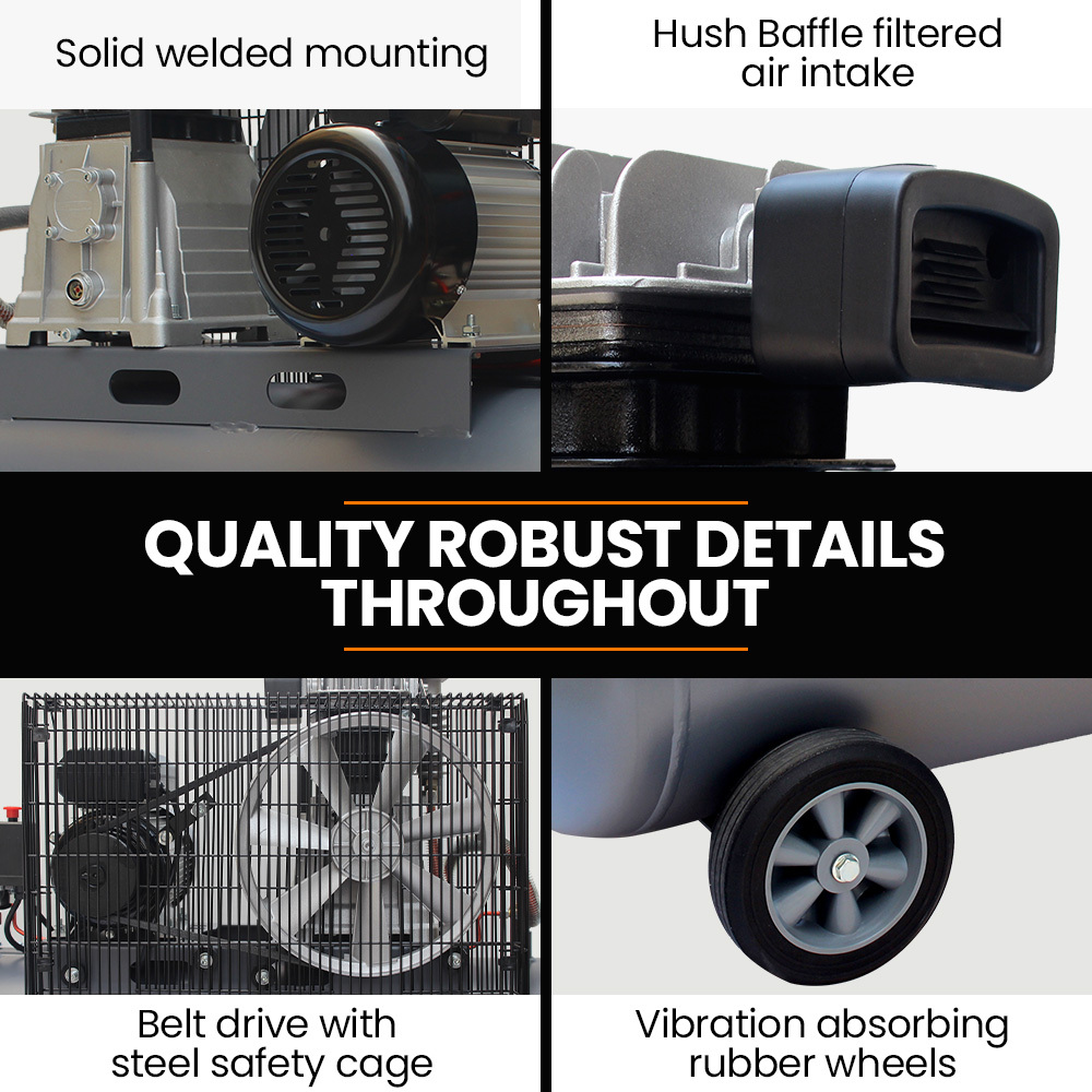 This industrial air compressor offers powerful performance, durability, and efficient operation suitable for professional and heavy-duty use. It features a robust design with a large capacity tank and reliable components to ensure long-lasting service and consistent airflow.