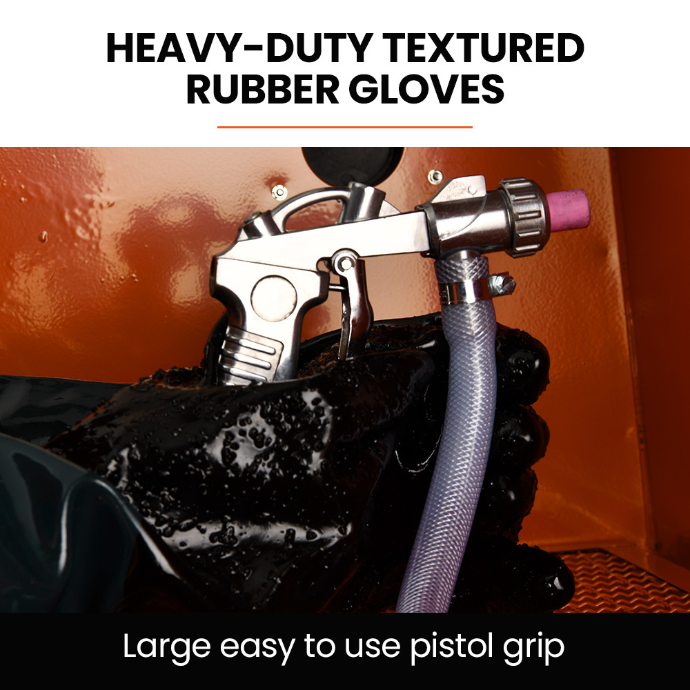 This benchtop sandblasting cabinet offers a professional-grade solution for surface cleaning and preparation. It features a durable construction, versatile blasting options, and efficient media recycling, making it suitable for both industrial and DIY applications.