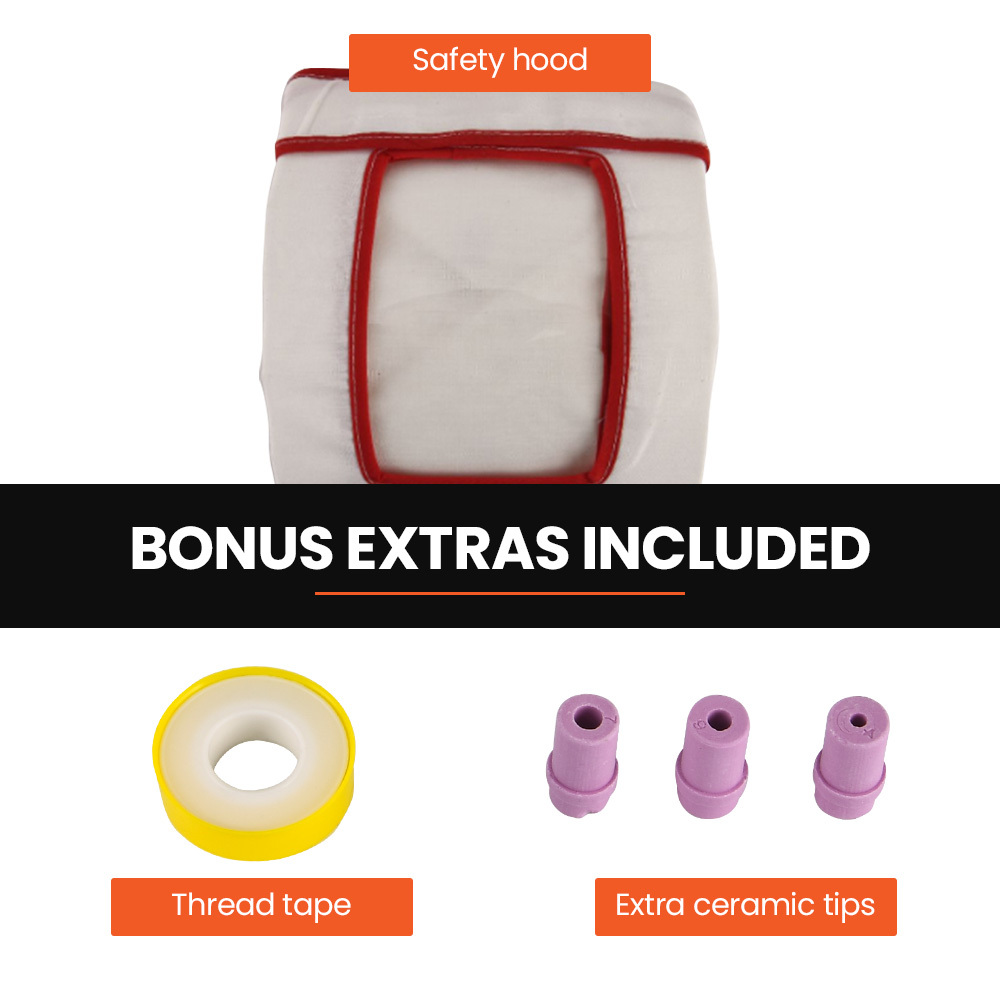 - Set of nozzles in 4, 5, 6, and 7mm sizes for versatile blasting
