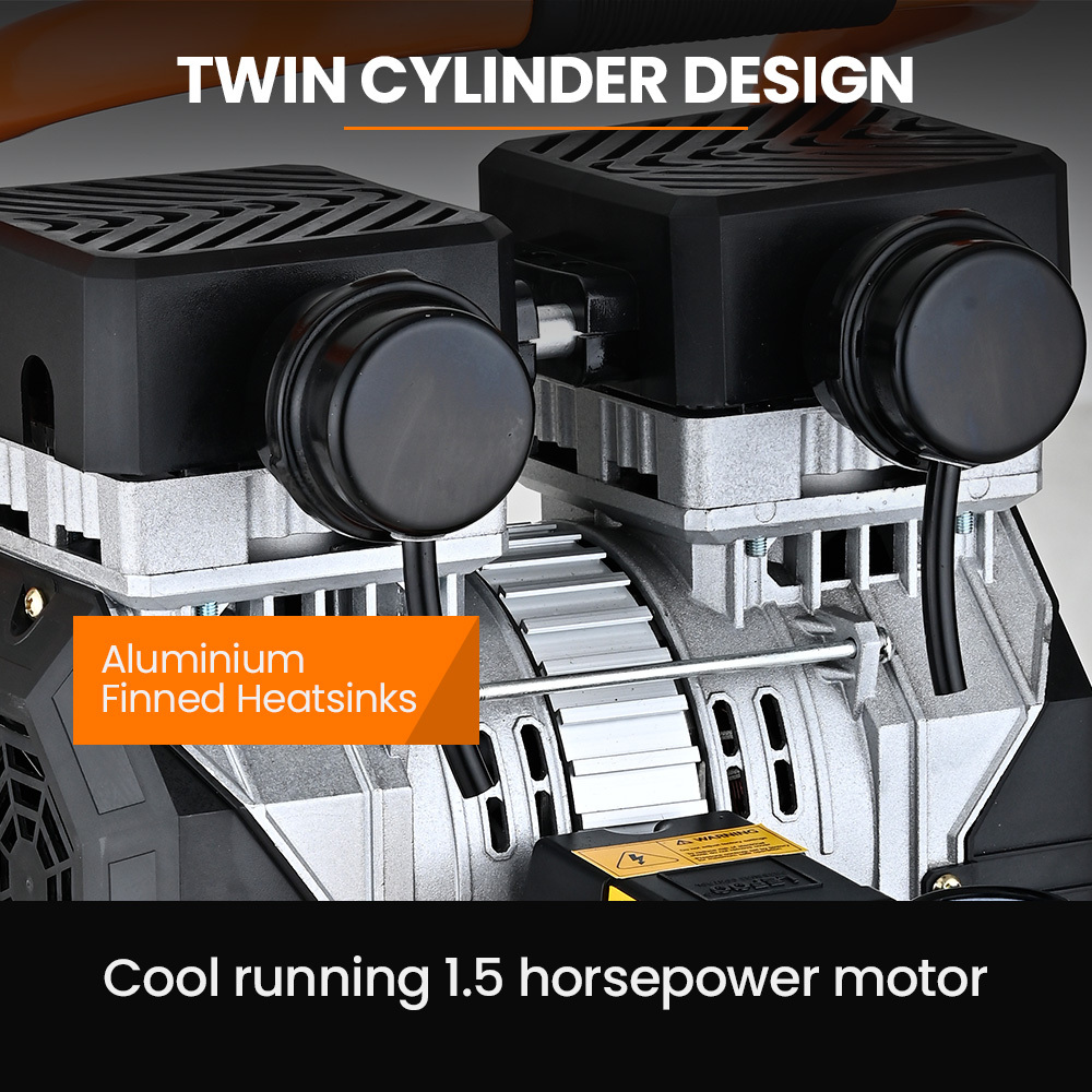 - Oil-free twin-cylinder motor with a power rating of 1.1 kW for reliable performance