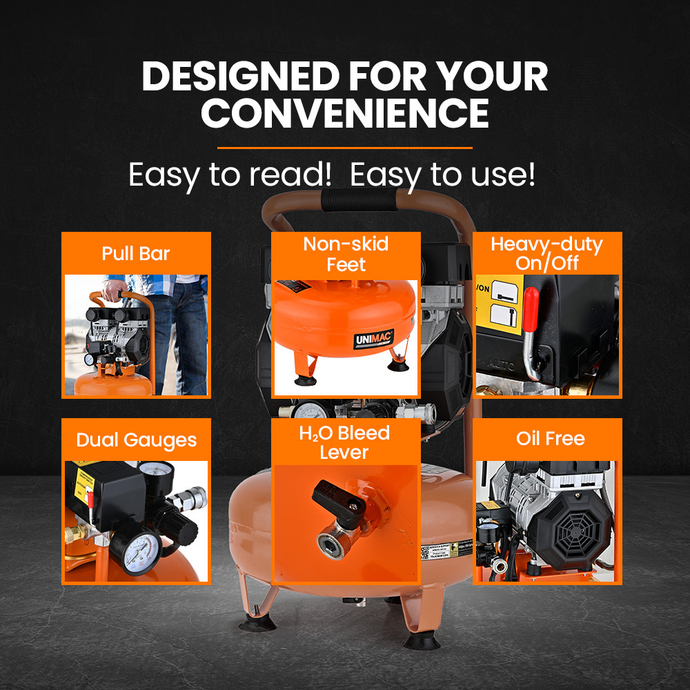 UNIMAC 15L Pancake Air Compressor, 116PSI Portable Silent Oil-Free Electric, for Airtools Tyre Inflation