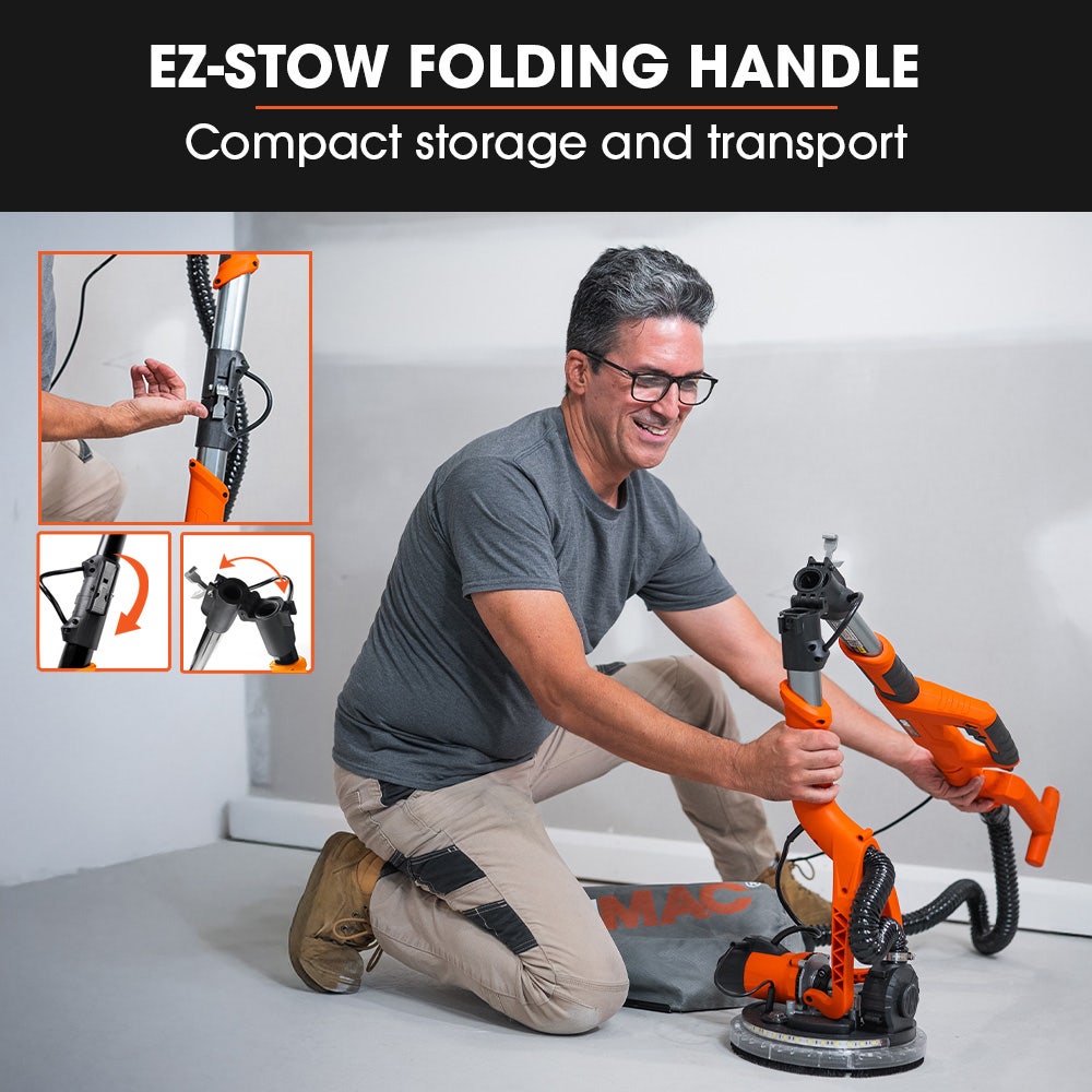Unimac 225mm 750W Telescopic Long Reach Dry Wall Sander Kit, Foldable, Vacuum System, LED Worklight, 6x Sanding Discs