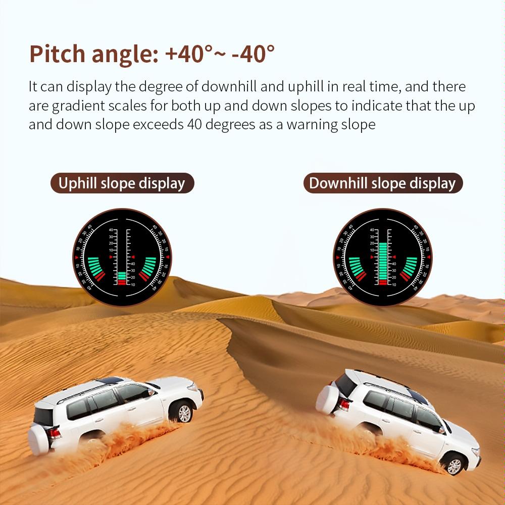 This universal car head-up display provides essential driving information directly on your windshield, helping you stay focused on the road and enhancing driving safety. It displays various data such as speed, driving direction, altitude, and more, with visual icons for better clarity and aesthetic appeal. The device also features voltage monitoring, satellite connection status, and navigation aids to support your driving experience.