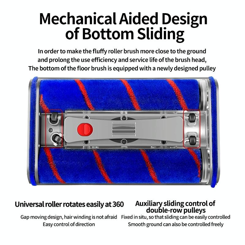 This universal double roller floor brush is designed for use with Dyson V7, V8, V10, and V11 models. Made from durable ABS material, it offers a long service life and effective cleaning performance. The double roller design enhances cleaning efficiency, making it easier to remove dirt and debris from various floor surfaces. It is simple to install and remove, and is suitable for cleaning table corners and chair legs that are typically difficult to reach. This product serves as a practical replacement for worn or broken floor heads.