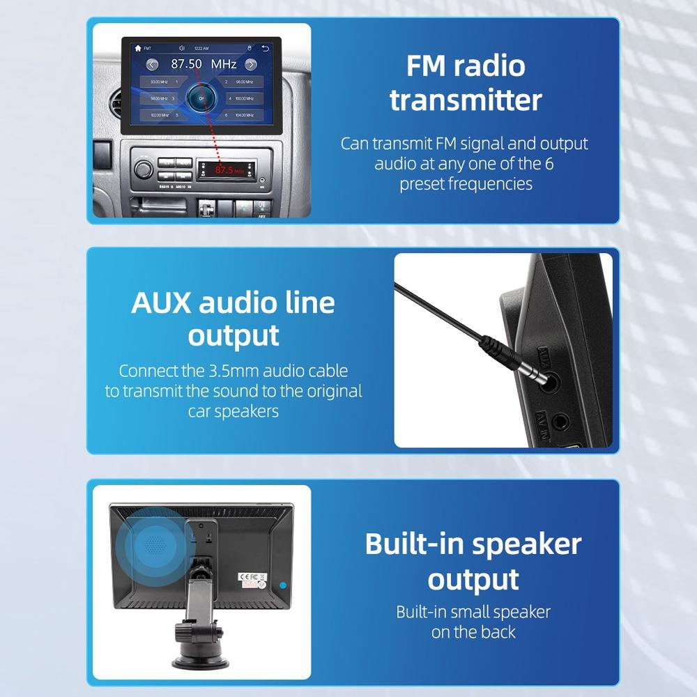 - Supports wired and wireless mobile phone projection, reversing image, TF card, AUX port, and reversing video input