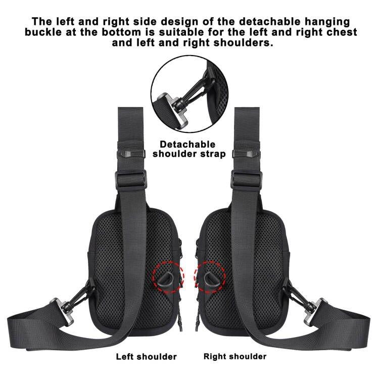 This universal nylon chest bag is designed to carry mobile phones ranging from 5.5 to 7.2 inches. It combines fashion and functionality, making it suitable for everyday use. The bag features multiple compartments for storing small items and is crafted from waterproof nylon elastic fabric for durability and protection. Adjustable shoulder straps ensure a comfortable fit for both men and women, while breathable mesh on the back enhances comfort during extended wear.