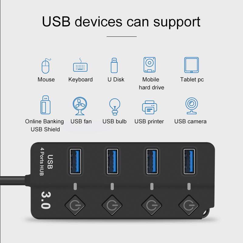 Usb 3.0 To 4 Usb 2.0 Splitter With Independent Switch