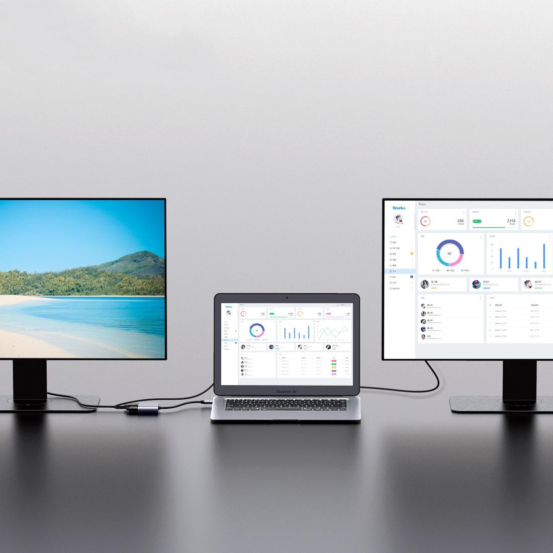 This 3-in-1 adapter allows you to connect your laptop or computer to external displays and audio devices through a single USB port. It supports high-definition video output and audio transfer, enabling seamless dual-screen setups and multimedia experiences.