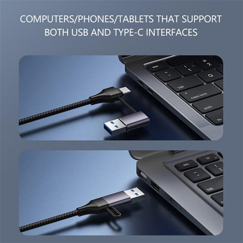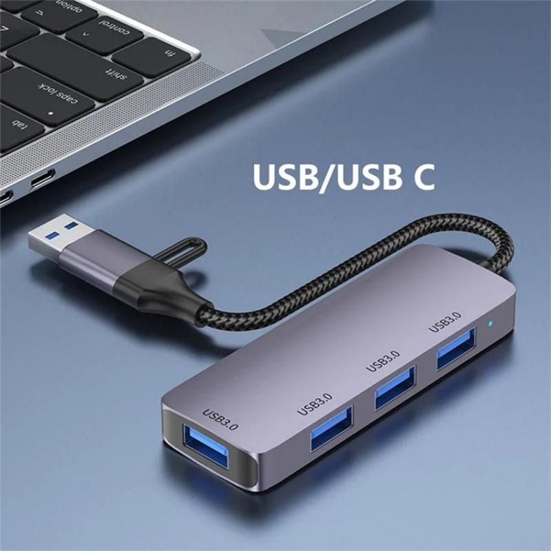 This USB + Type-C 3.0 Converter Hub is designed for laptops and tablets, providing multiple USB 3.0 ports for expanded connectivity. It features a durable aluminum alloy shell and a braided cable for enhanced durability. The dual connectors ensure compatibility with various devices, making it a versatile accessory for your tech setup.