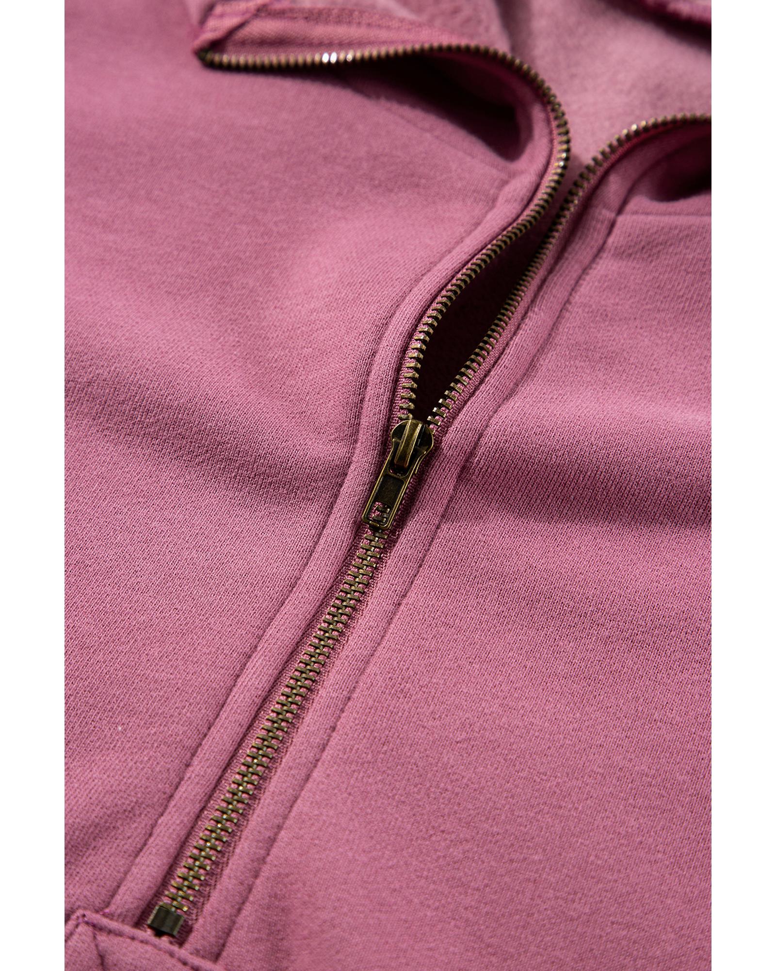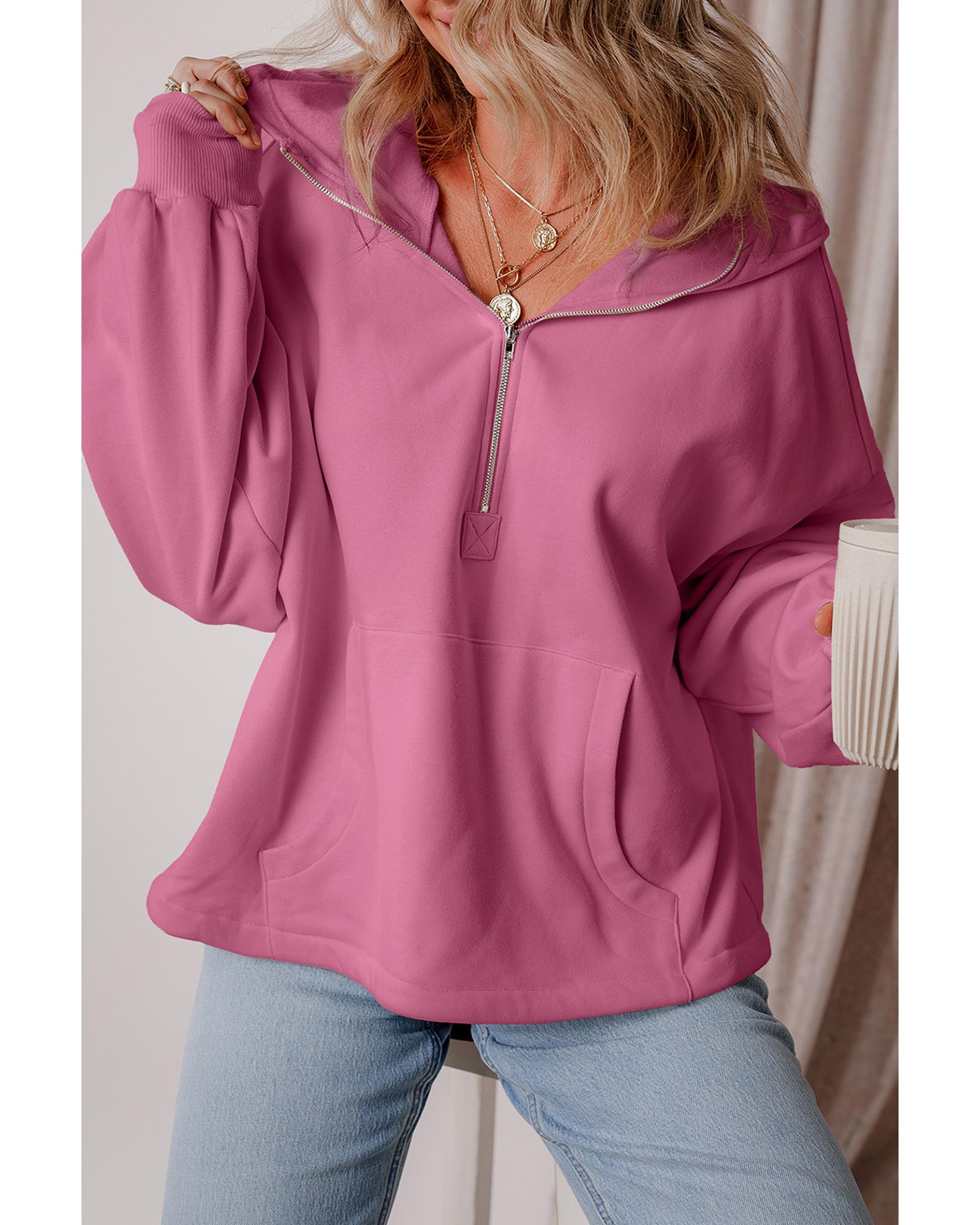 Valerian Fleece Lined Half Zipper Kangaroo Pockets Loose Hoodie – M