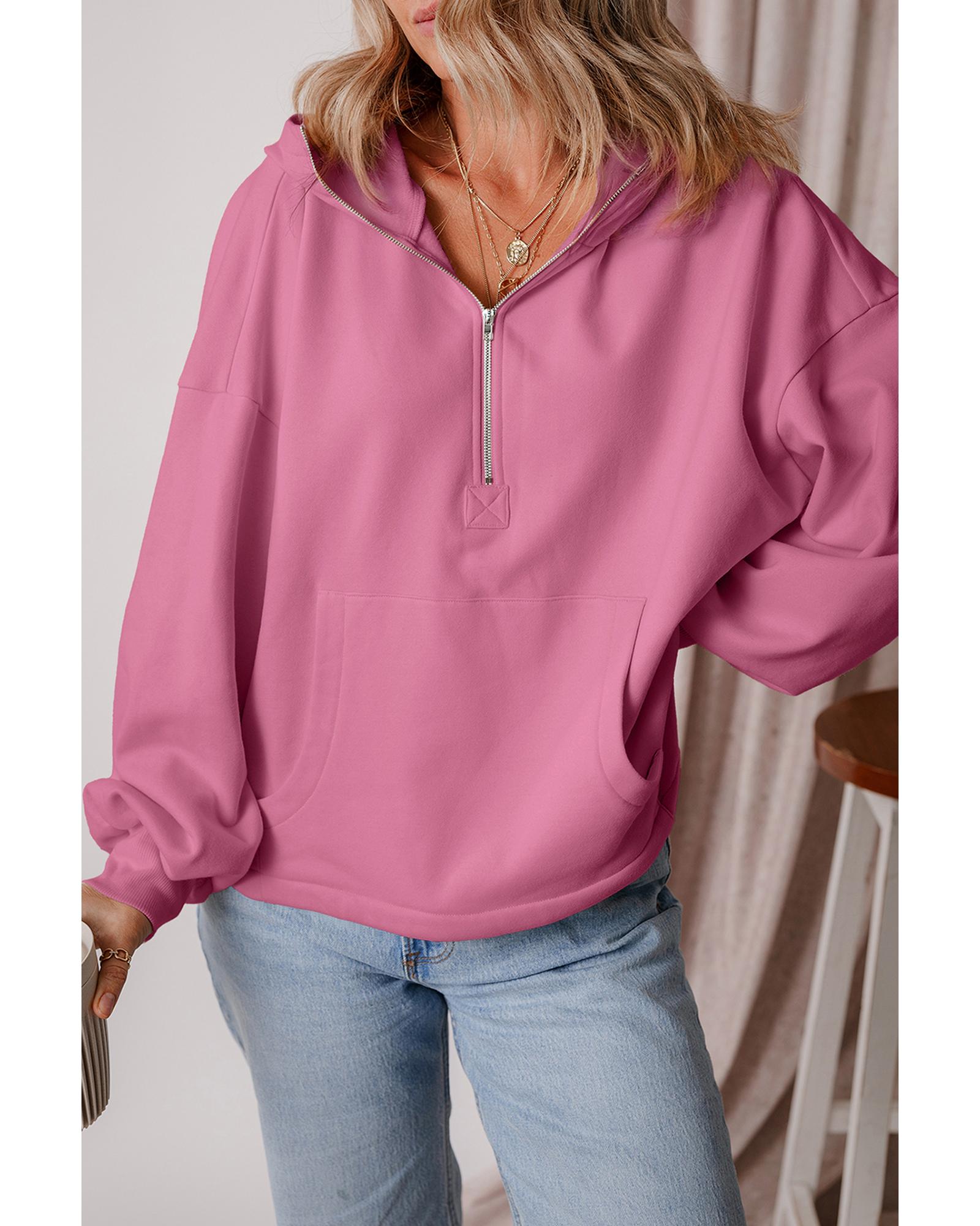 This fleece-lined half zipper hoodie offers a stylish and comfortable option for casual wear. Designed with a trendy fitted look, it features practical details such as kangaroo pockets and a convenient zipper, making it suitable for lounging or casual outings.