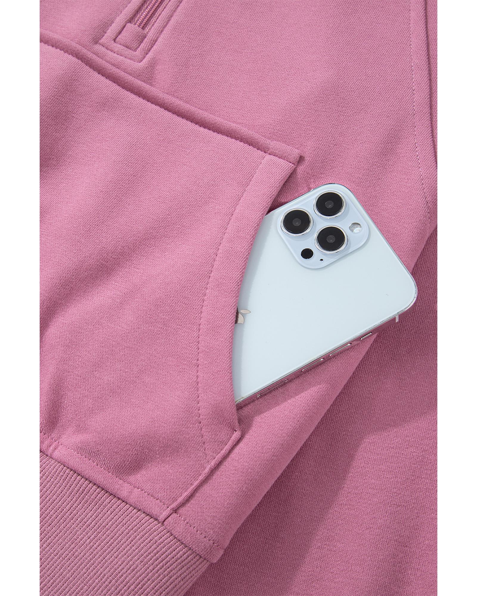 Valerian Quarter Zip Stand Neck Kangaroo Pocket Sweatshirt – L