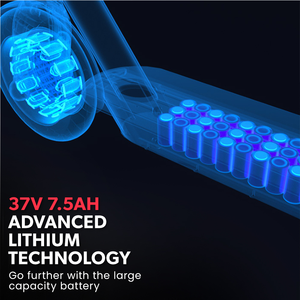 - Premium-grade 37V 7.5Ah lithium battery with a range of up to 25km
