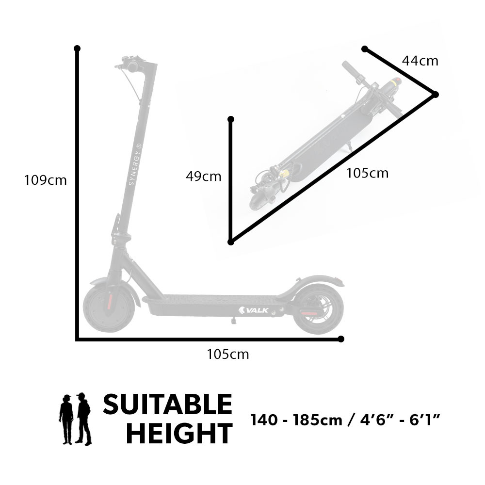 VALK 400W Electric Scooter, 37V Folding E- Scooter with Suspension, for Adults, Synergy 5 MkII Black