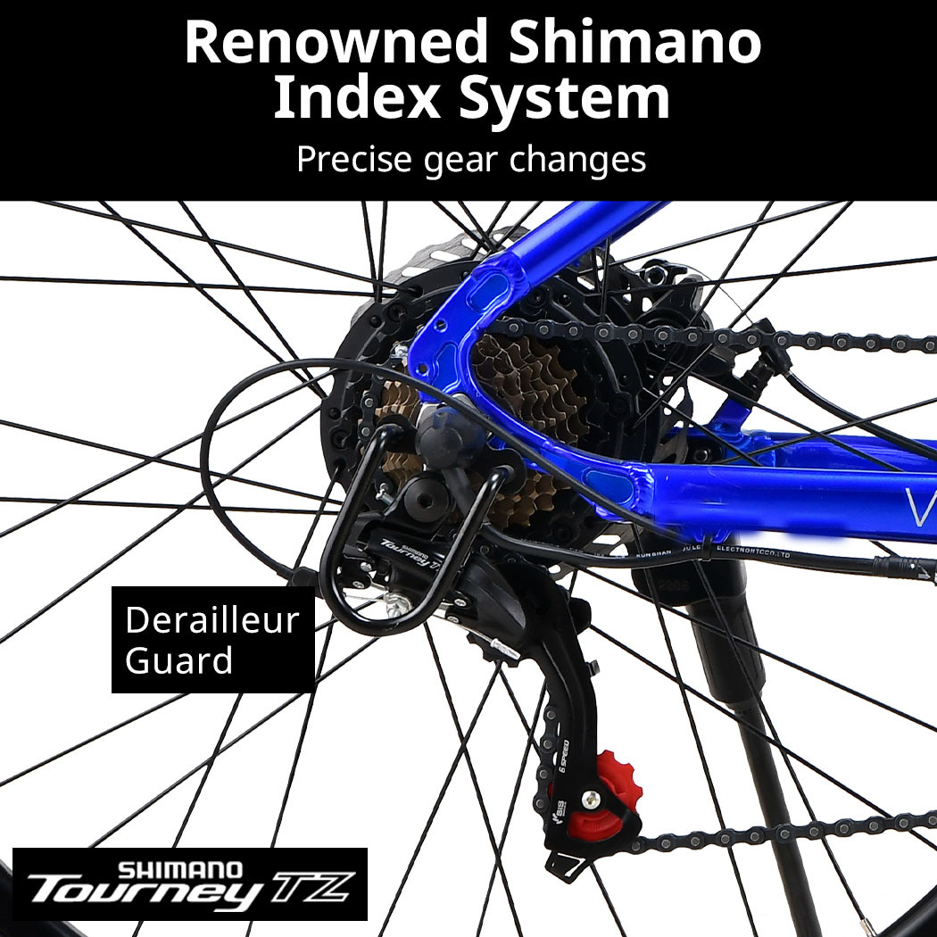- Shimano Tourney TZ derailleur and 7-speed shifter for smooth gear changes