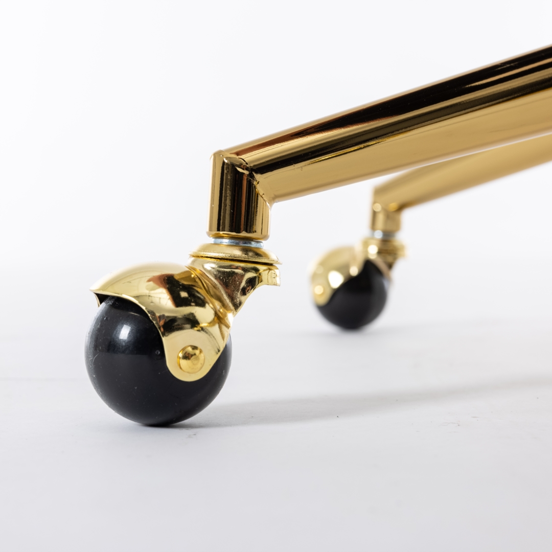 - Stylish appearance with gold metal legs, studs trim, and tufted diamond-patterned backrest