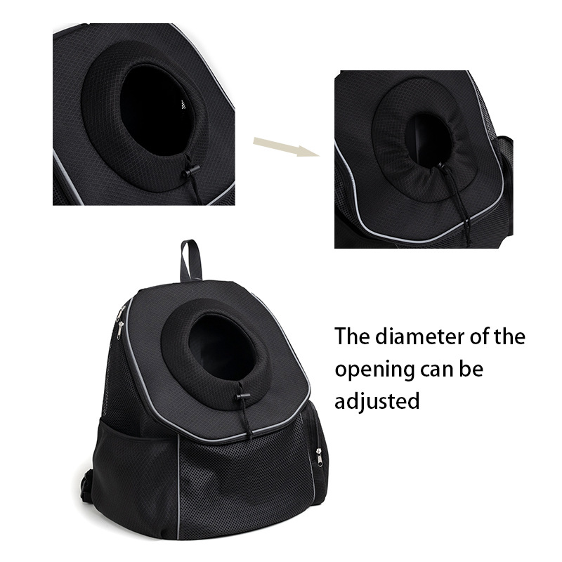 This ventilated adjustable pet backpack is designed for small to medium dogs and large cats, providing a comfortable and secure way to carry your pet during travel. It features a breathable mesh front panel for optimal airflow, an adjustable opening for pets to look out, and additional pockets for storing pet essentials. The durable design ensures reliability and convenience for pet owners on the go.