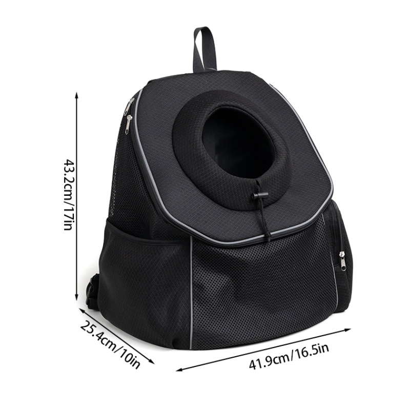 The backpack measures 16.5 inches in length, 10 inches in width, and 12.8 inches in height, making it a practical size for various pets. It is constructed with durable materials to withstand daily use and travel needs.