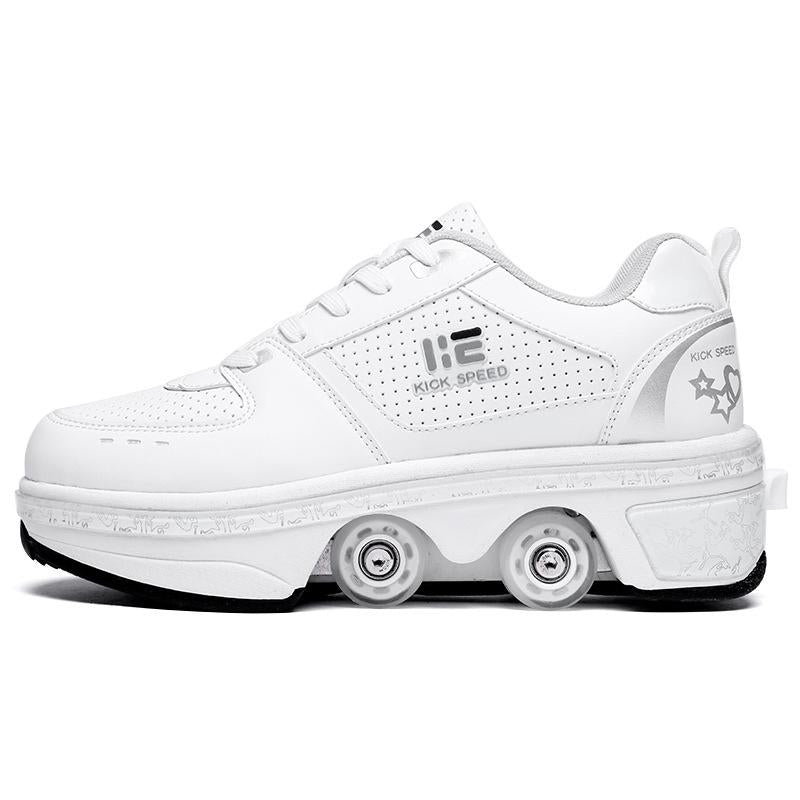 Versatile Double Row Rune Roller Skates – Size 38 – High-Top With Light (White)
