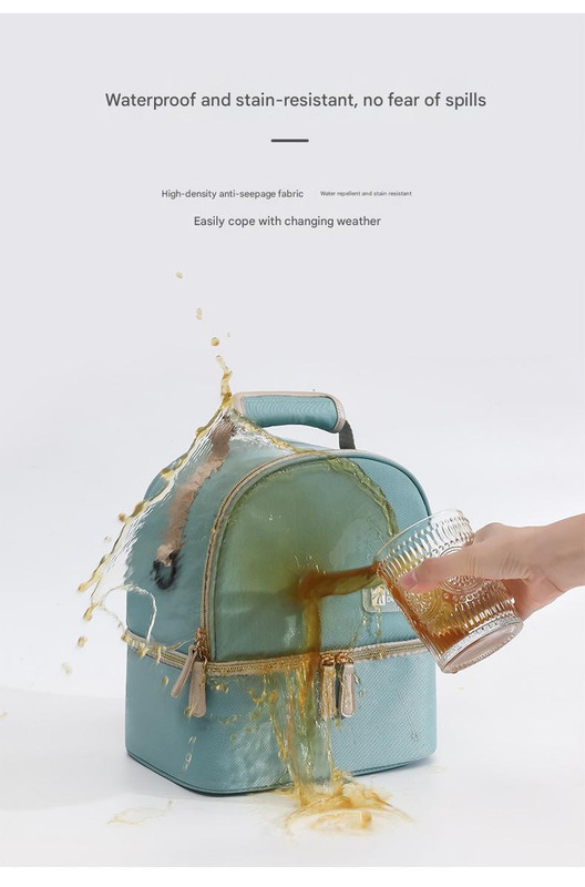 - Layered storage to separate wet and dry items or different temperature contents