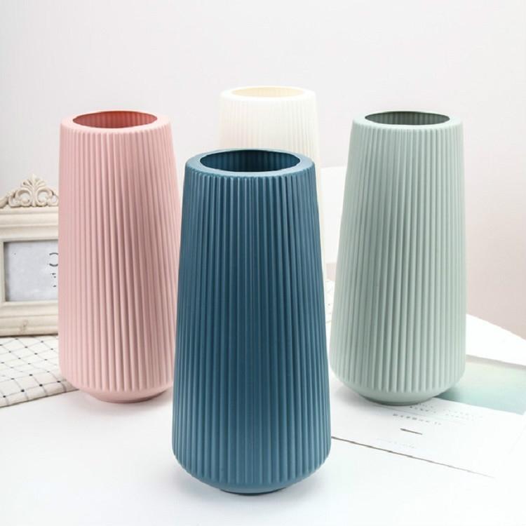 This versatile plastic flower vase is suitable for both dry and wet arrangements. It features a modern and simple design with a matte textured surface, making it an elegant addition to various interior settings. Crafted from thick and durable plastic, it offers long-lasting use and fine workmanship.