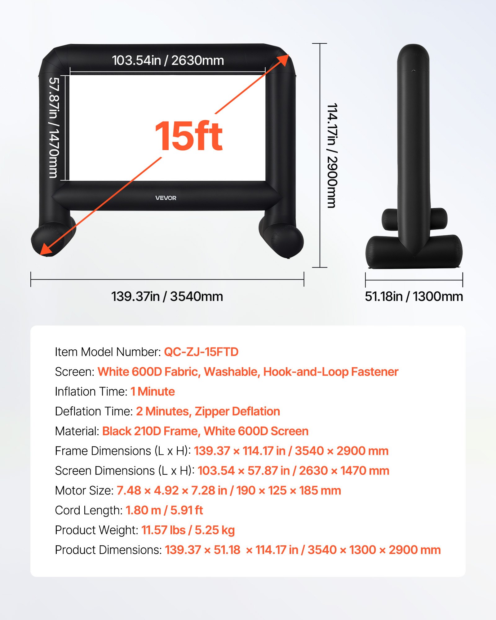 VEVOR 15 ft Inflatable Movie Screen 16:9 600D Movie Projector with Portable Bag