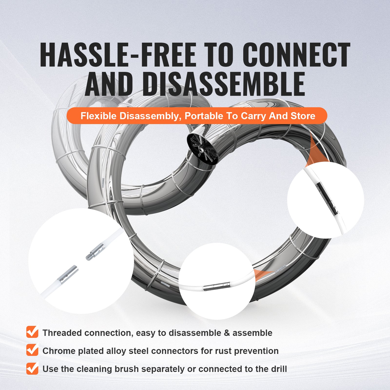 VEVOR 914.4CM Dryer Vent Cleaner Kit, 22 Pieces Duct Cleaning Brush, Reinforced Nylon Dryer Vent Brush, Dryer Cleaning Tools Lint Remover with Flexible Lint Trap Brush, Clamp Connectors