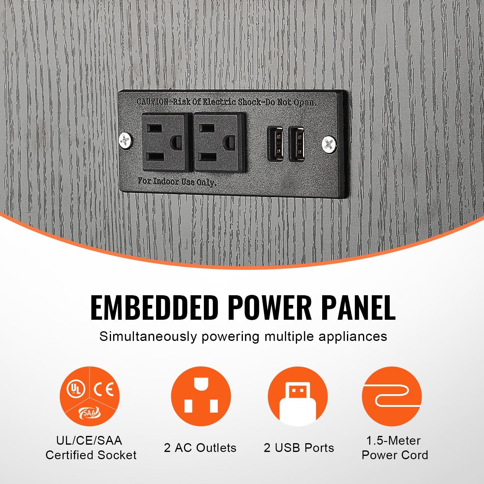 • Power panel: Embedded with 2 AC outlets and 2 USB ports