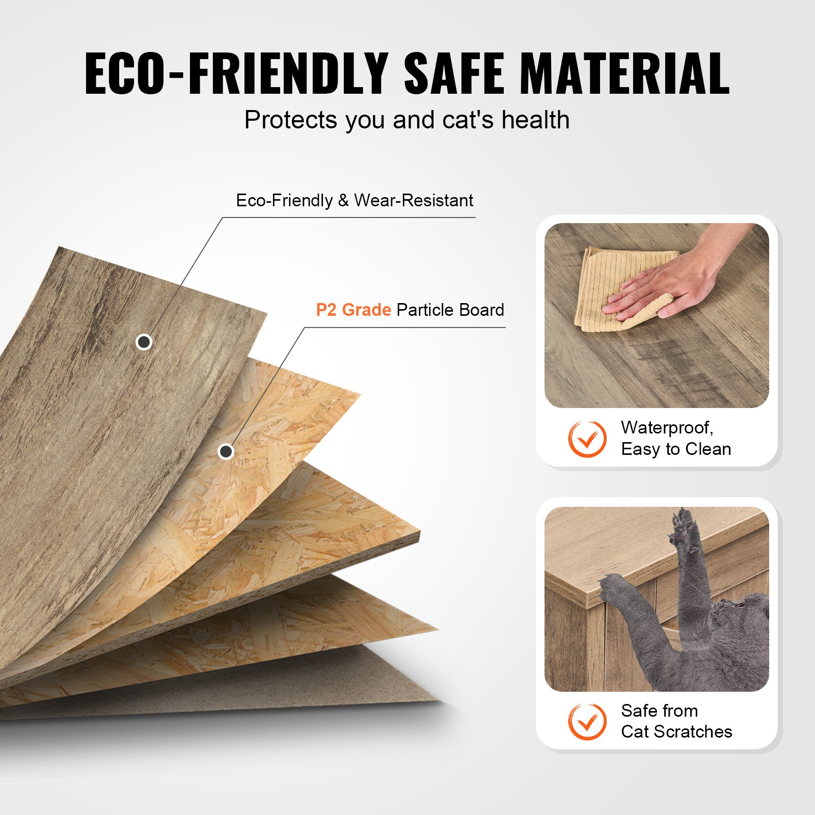 VEVOR Cat Litter Box Enclosure Wooden Litter Box Furniture Hidden 2 Rooms Greige
