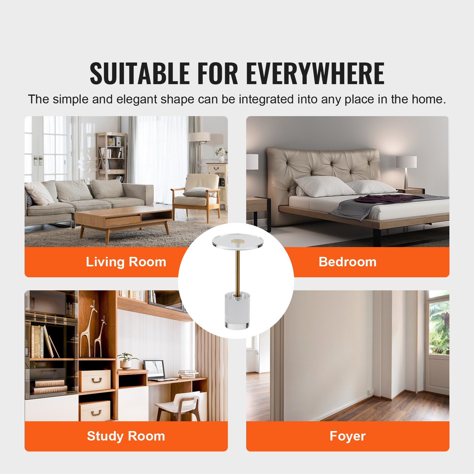 VEVOR Clear Acrylic End Table, Acrylic Side Table with a Solid Base, 11.9 x 11.9 inch Round Tabletop, 21.4 inch High, for Coffee, Drink, Food, Snack used in Living Room, Bedroom, and Study