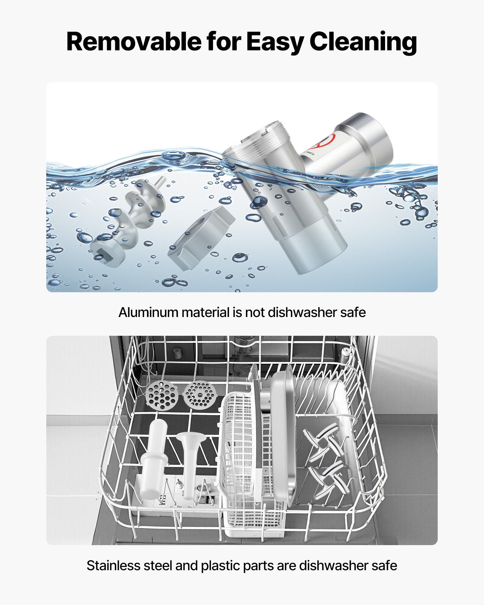- Fast Meat Grinding: Equipped with a 600W pure copper motor, capable of grinding up to 4.5 pounds of meat per minute. Suitable for continuous operation for up to 30 minutes.