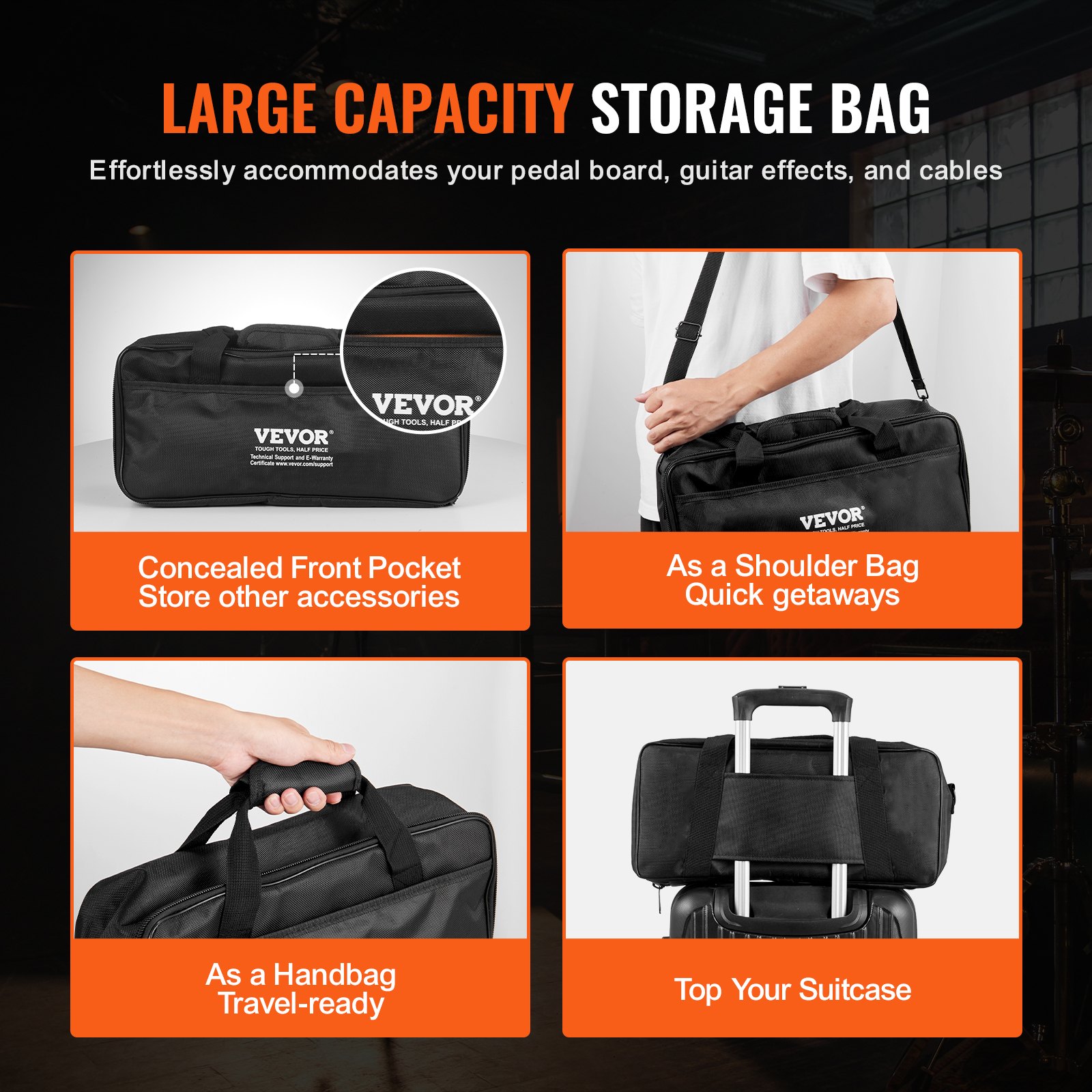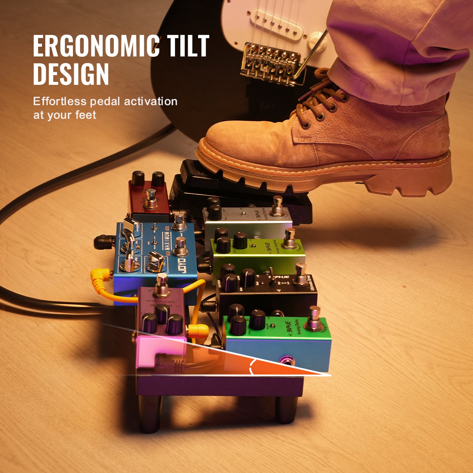 This lightweight and durable guitar pedal board is designed to accommodate 4-6 guitar pedals, providing a spacious surface with a dedicated space below for power supplies. Its compact size and included carry options make it ideal for musicians on the move, ensuring easy transportation and organization.