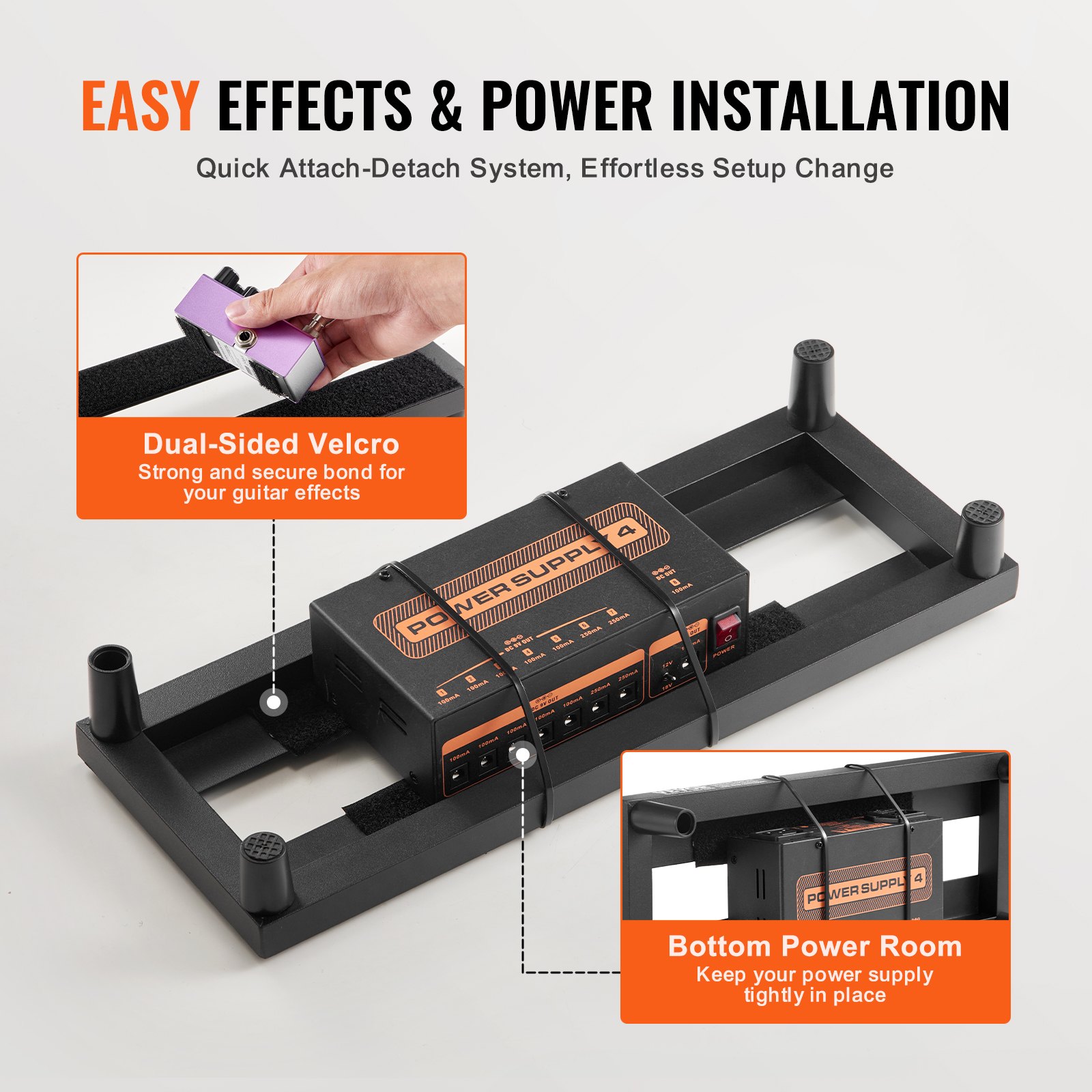 - Accommodates 4-6 guitar pedals with a dedicated power supply compartment