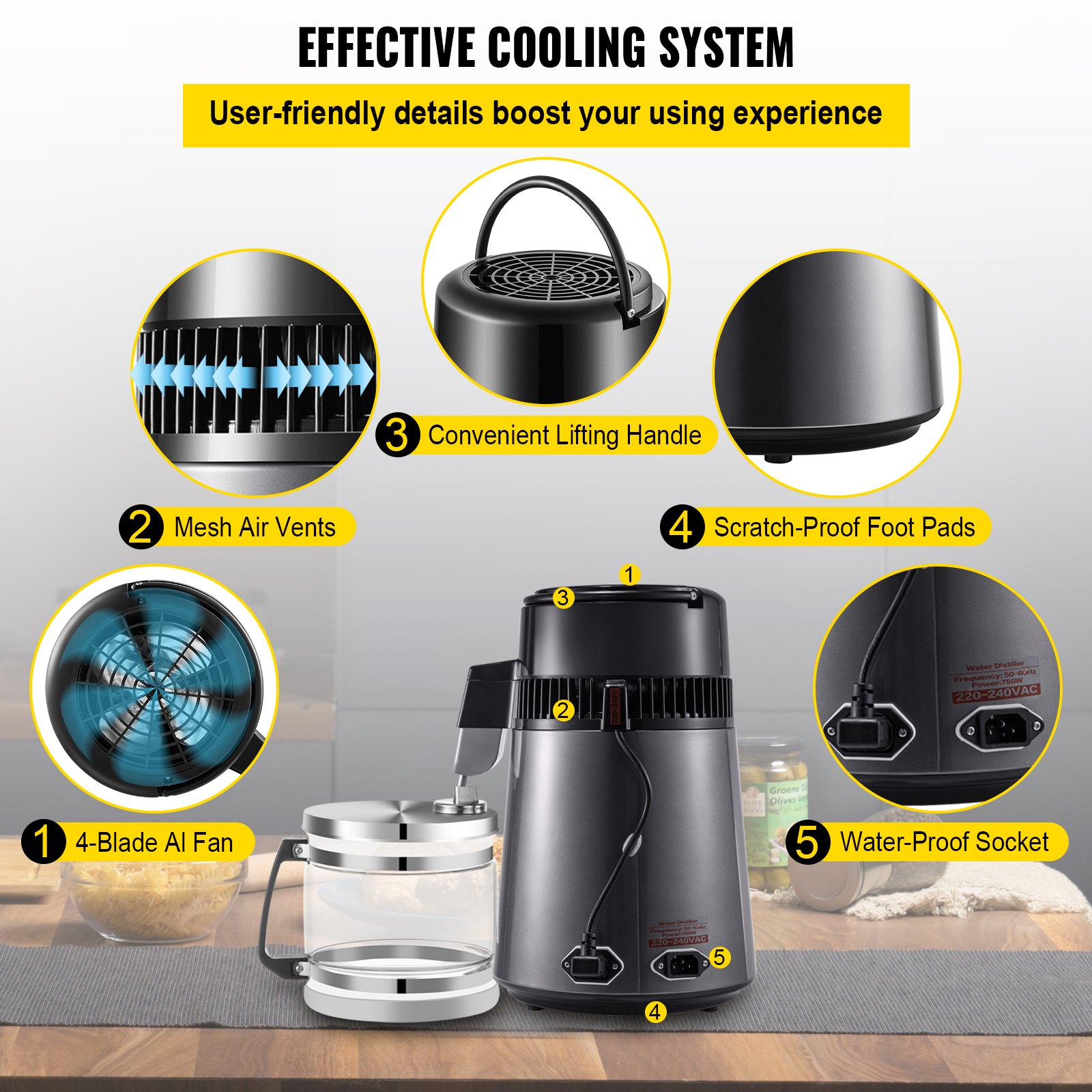 VEVOR Home Water Distiller Distilled Water Maker 4 L with Dual Temp Display Grey