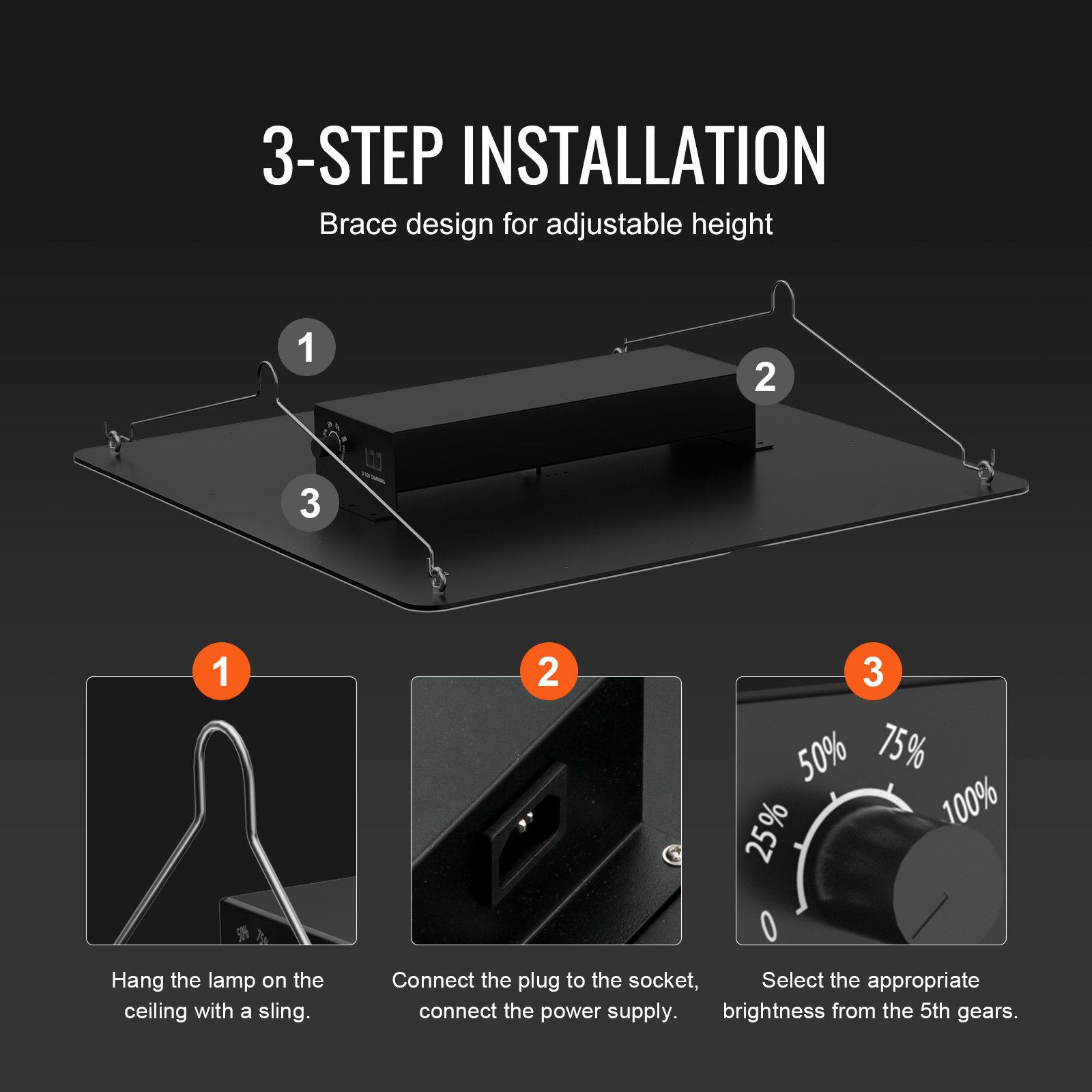 - Easy to install and adjust with a stay bar for height customization and five brightness levels. Multiple lights can be connected with unified dimming control, ideal for large indoor growing spaces and commercial use.