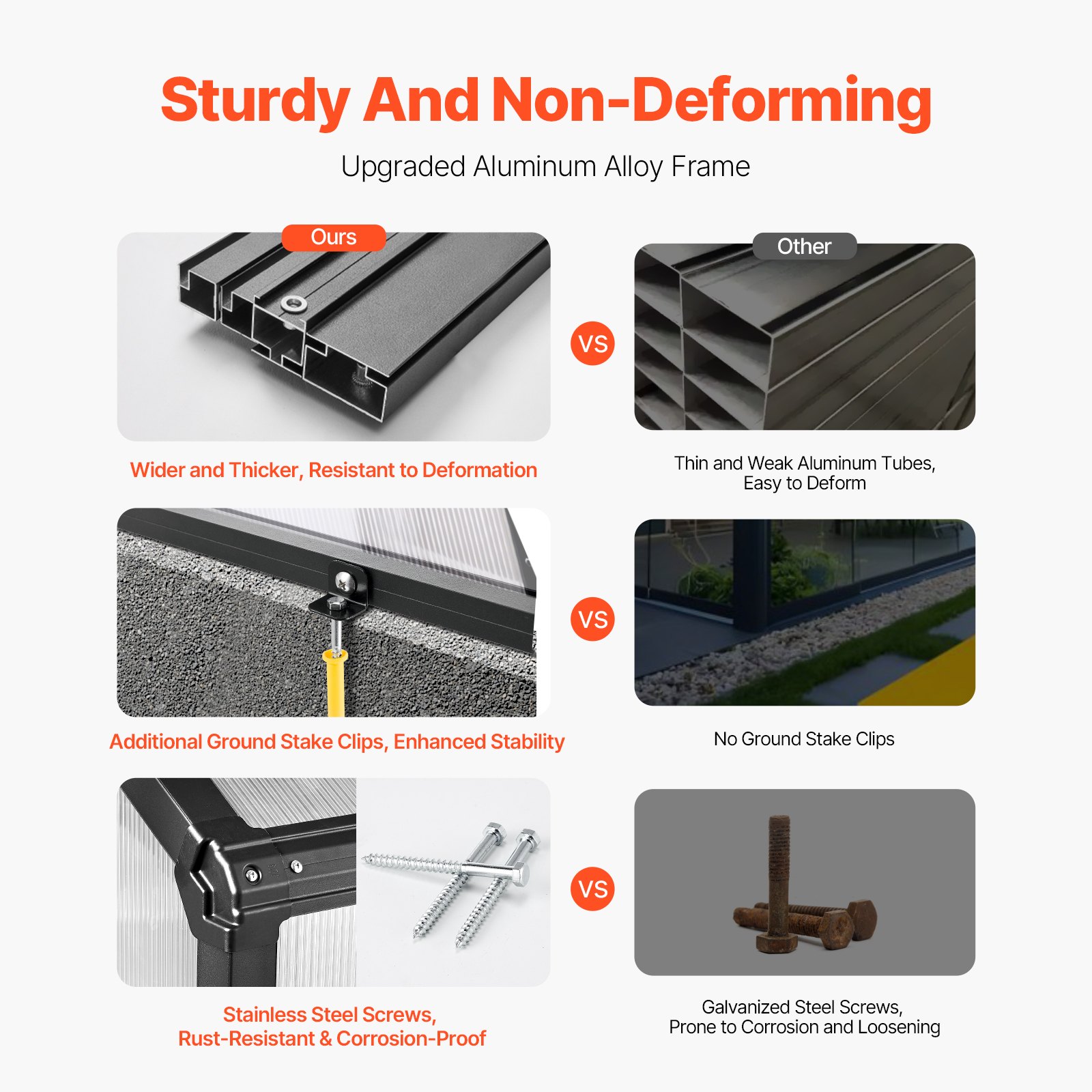 VEVOR Polycarbonate Greenhouse 8 x 14 Ft Outdoor Walk-in Greenhouse for Garden