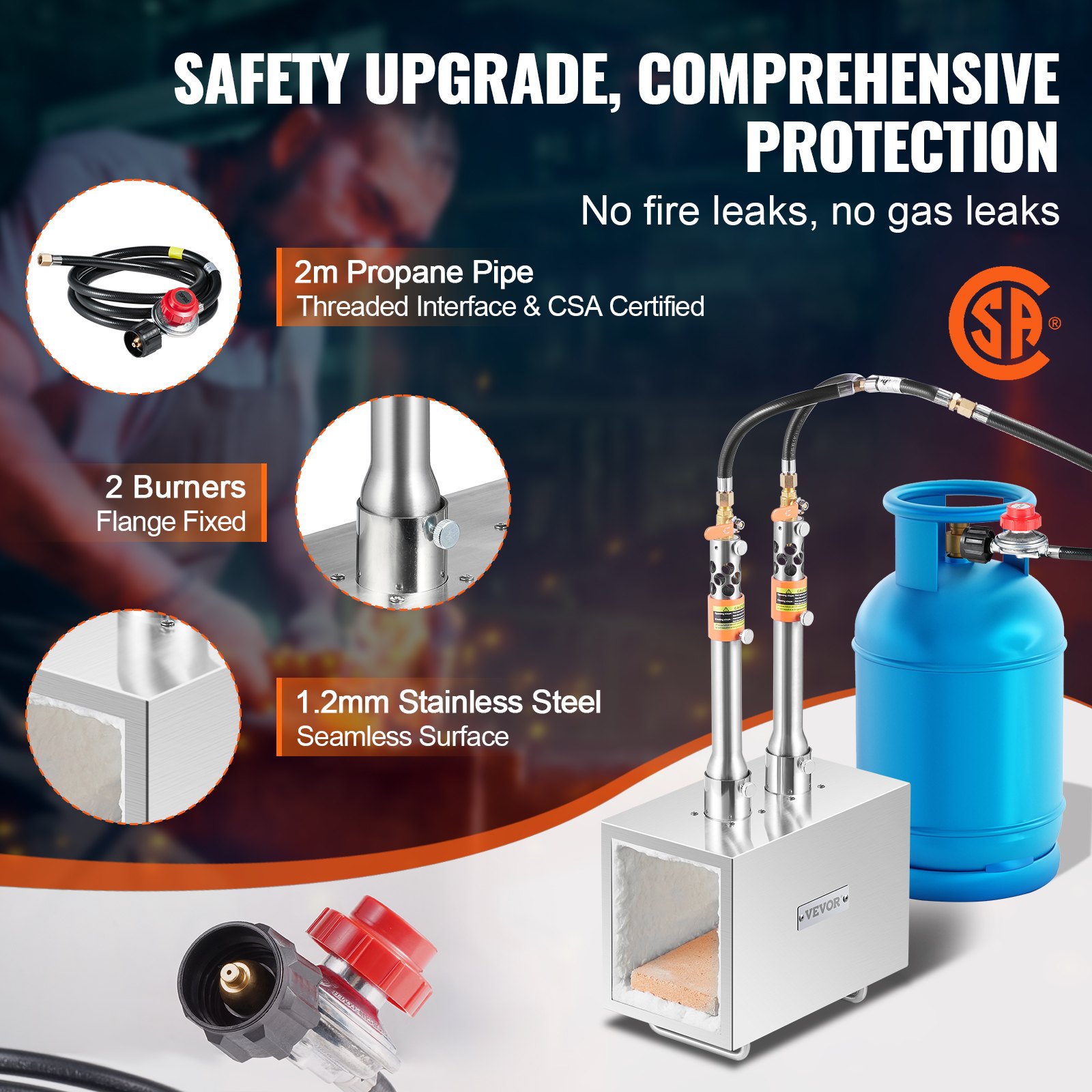 VEVOR Portable Propane Forge 2 Burner Farrier Forge Knife Metal Square