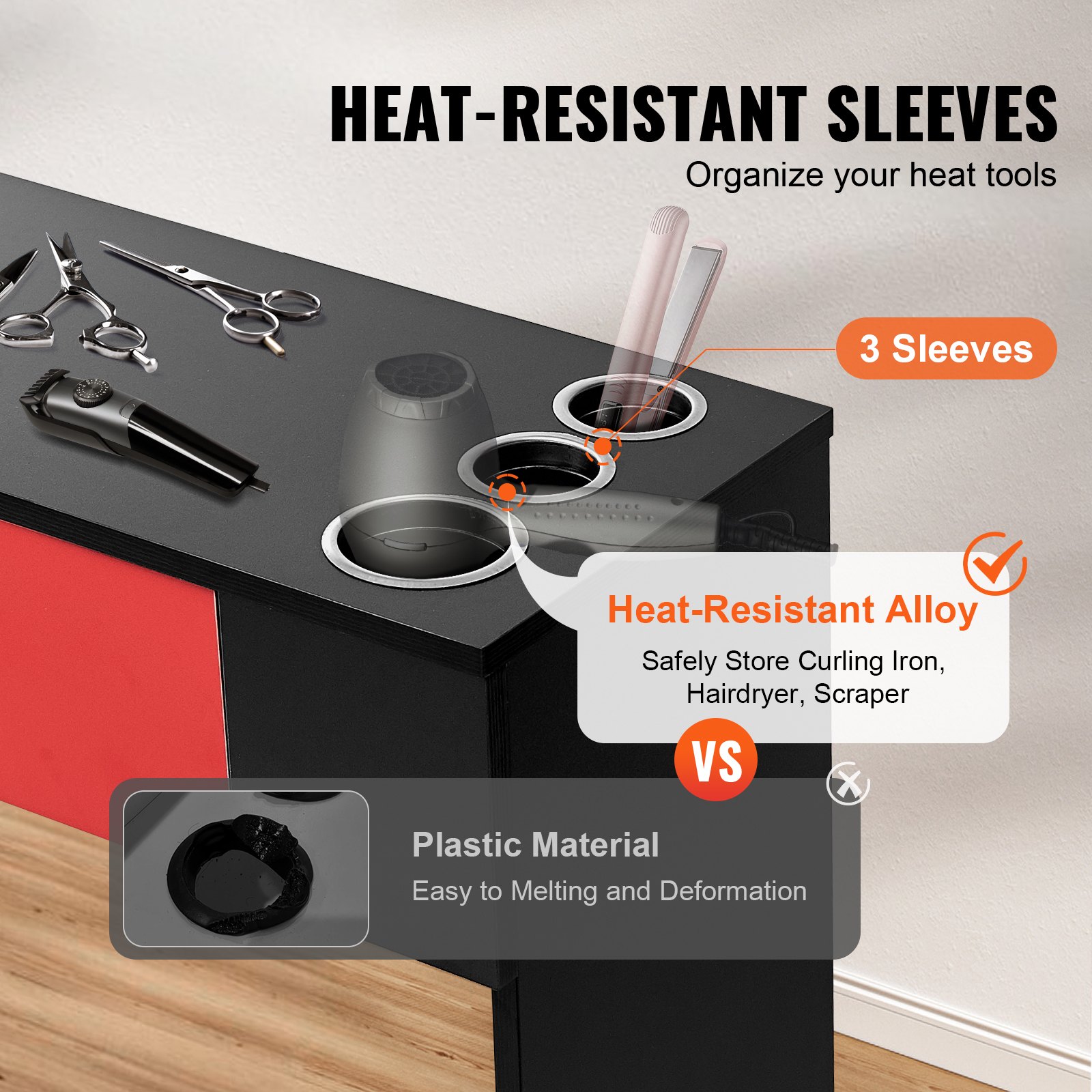 - Includes heat-resistant sleeves for styling tools, with a bottom cover to prevent tools from falling