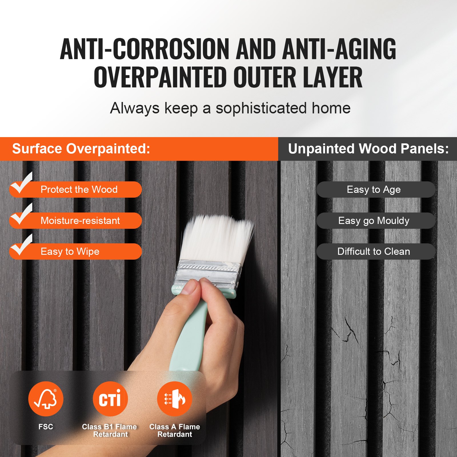 VEVOR Wood Slat Acoustic Panels 23.6 x 47.2 inch for Modern Wall Decor Black Oak