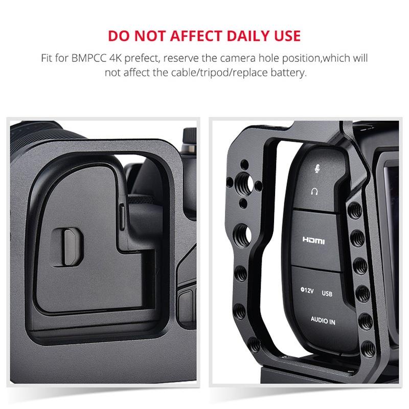 - Designed specifically for BMPCC 4K with reserved camera hole positions