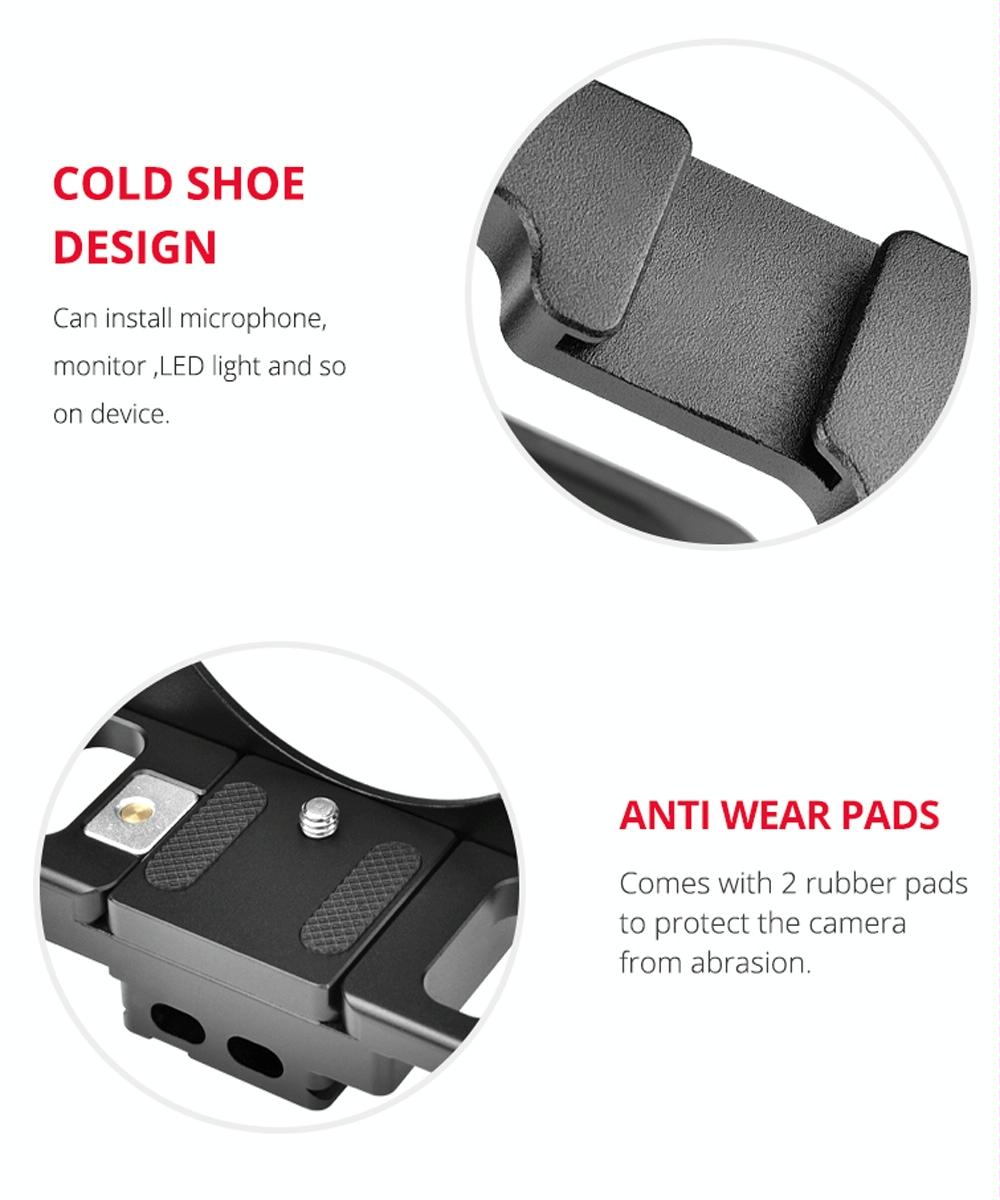 - Equipped with a cold shoe and Arri stop holes for added versatility