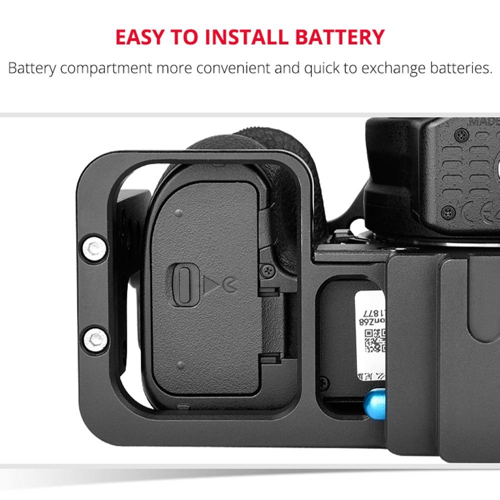 This camera cage stabilizer is designed to enhance the stability and versatility of your Nikon Z6 or Z7 camera. Crafted with durable CNC machining and surface anodizing, it offers reliable performance and a professional appearance. The cage features multiple threaded holes and interfaces for accessories, providing flexibility for various filming setups. It includes a handle and rail rod for improved handling and stability, making it suitable for professional video production.