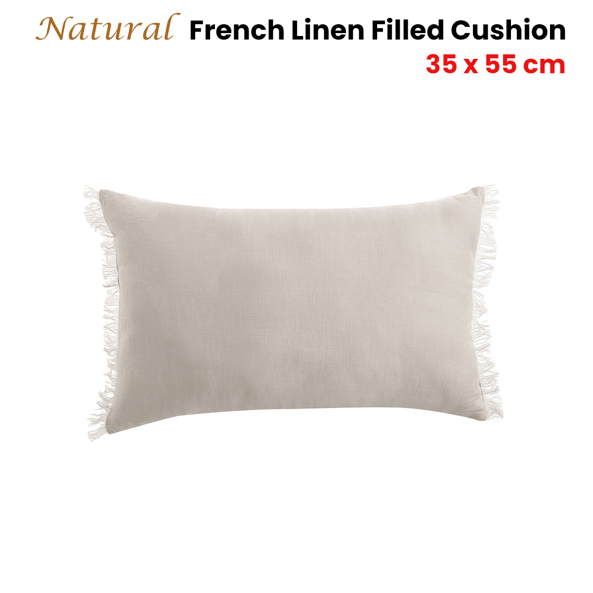 Vintage Design Homewares Natural French Linen Filled Cushion Oblong – 35cm x 55cm