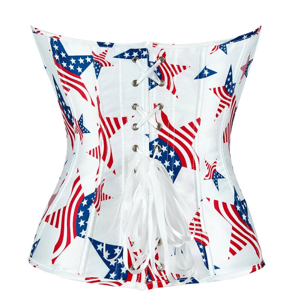 - 1 x Vintage Gothic Fish Bones Lace Up Satin Overbust Corset White USA Flag Design