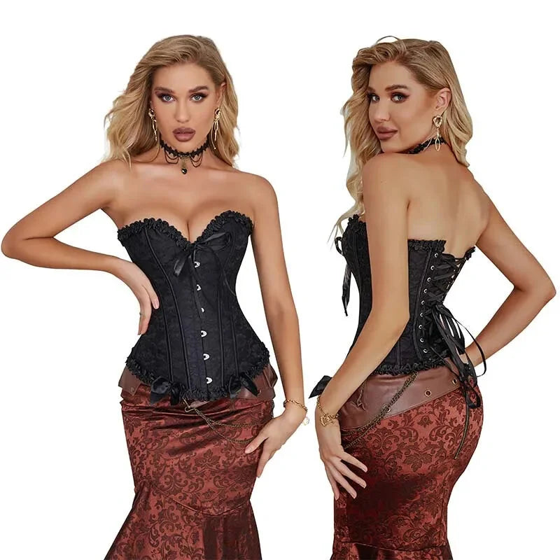 - Includes one vintage lace overlay corset with bowknot detail and lace-up design