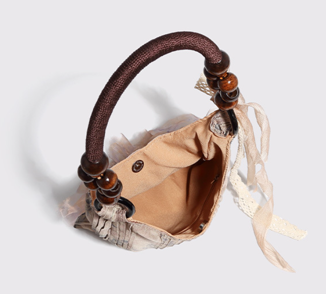 - Wooden bead handle with a wrapped grip for rustic elegance and comfortable carrying