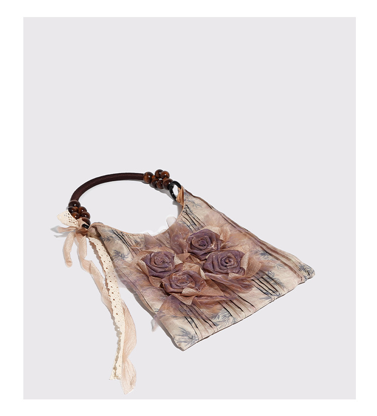 This vintage-inspired floral shoulder bag features intricate 3D fabric roses and a unique design that combines elegance with practicality. Its charming details and versatile carrying options make it a stylish accessory suitable for various occasions.