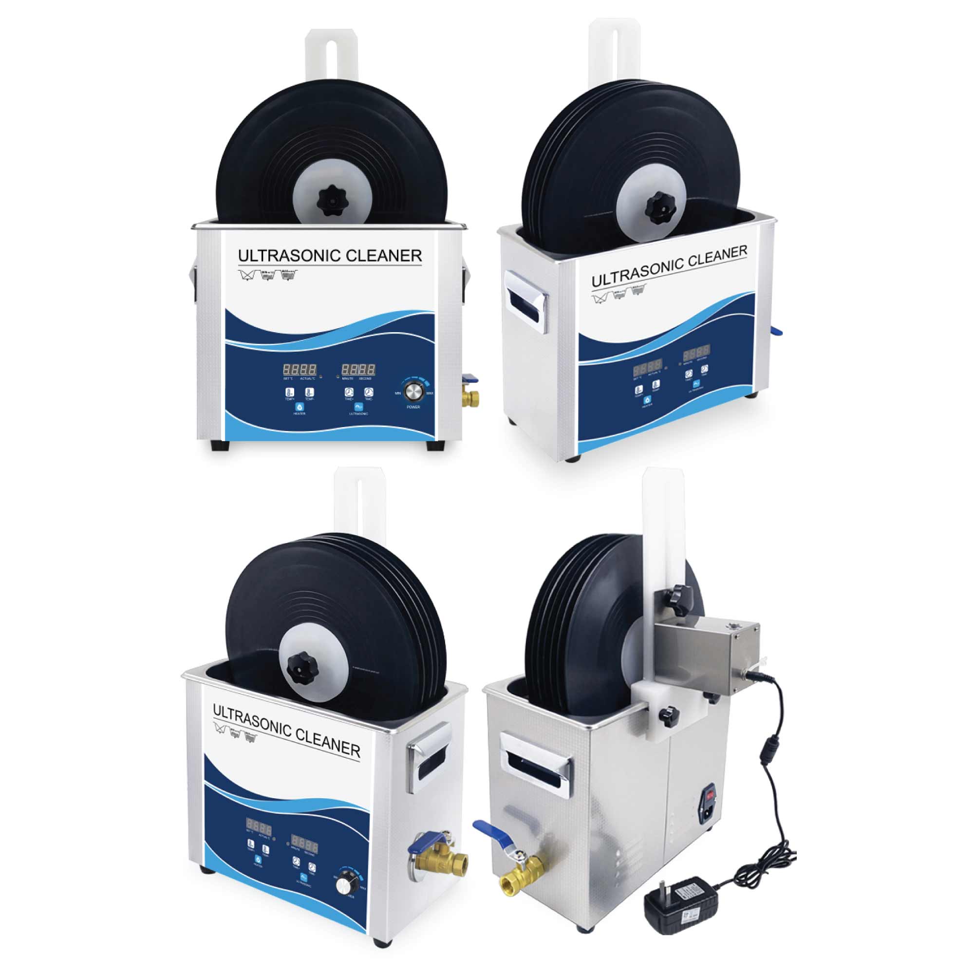 This vinyl record cleaning stand is designed to work with ultrasonic cleaners, providing an efficient way to clean and dry multiple records simultaneously. It features adjustable components to ensure optimal cleaning performance and record safety.